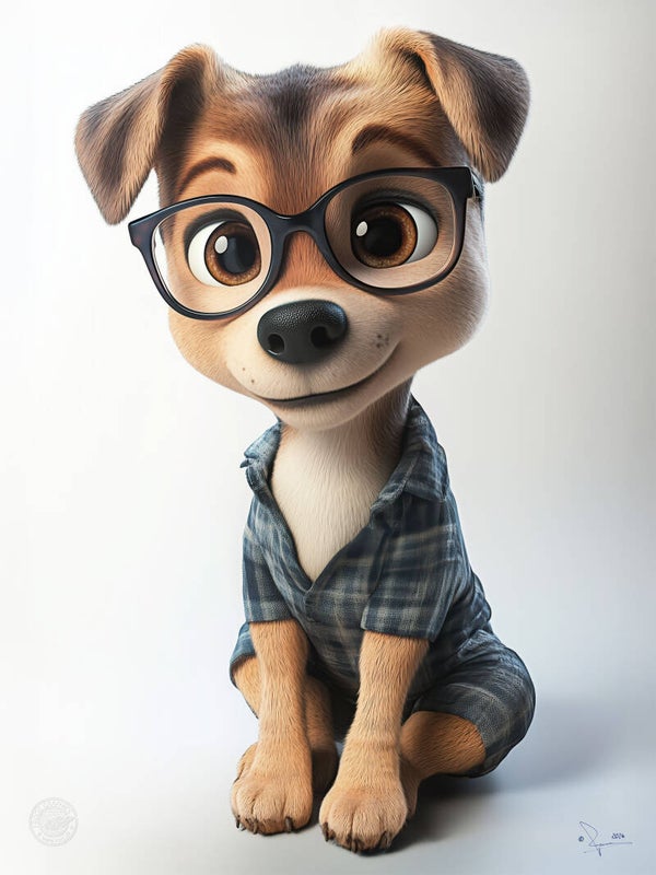 Das Leinwandbild zeigt Max, einen liebenswerten kleinen Hund mit großen, neugierigen Augen und einer witzigen Brille. Sein kariertes Hemd verleiht ihm einen charmanten, schlauen Look. Max strahlt soviel Wärme und Freundlichkeit aus, dass man ihn am liebsten in den Arm nehmen würde.